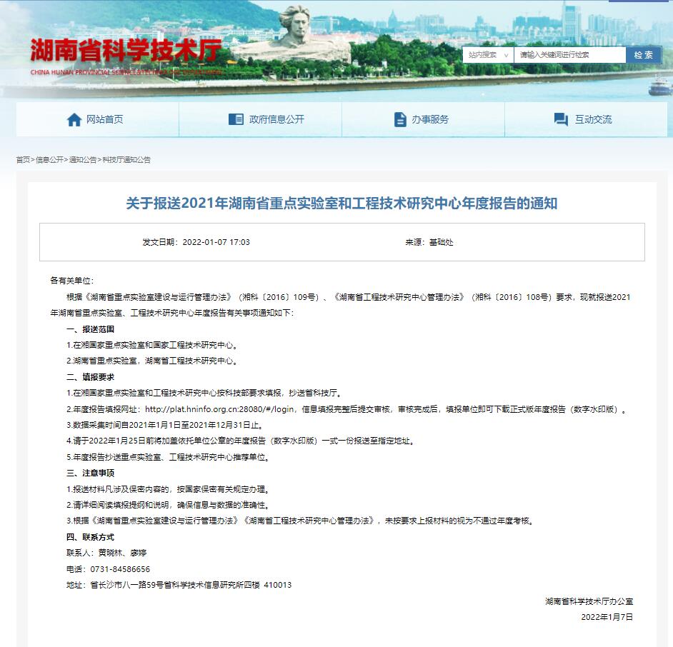 附件:《关于报送2021年湖南省重点实验室和工程技术研究中心年度报告的通知》